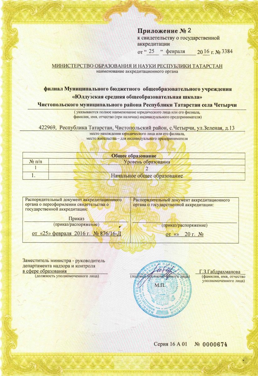 Адрес: 422980, Республика Татарстан, Чистопольский район, пос. Юлдуз, ул. Полевая, д. 10