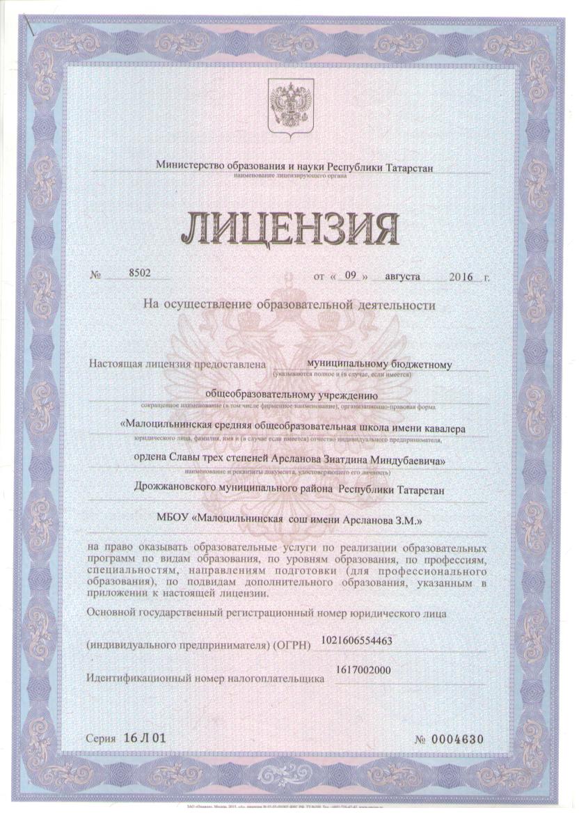 Муниципальное бюджетное общеобразовательное учреждение «Малоцильнинская средняя общеобразовательная школа имени кавалера ордена Славы трех степеней Арсланова Зиатдина Миндубаевича» Дрожжановского муниципального района Республики Татарстан /Татарстан Республикасы Чүпрәле муниципаль районы “Дан орденының тулы кавалеры Арсланов Зиатдин Миннебаевич исемендәге Кече Чынлы гомуми урта белем бирү мәктәбе” муниципаль бюджет гомуми белем бирү учреждениесе