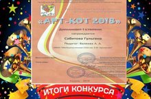 Подведены итоги Республиканского конкурса детского рисунка «Арт-Кот- 2018", который проходил с 26.02 по 01.04.2018 года. В конкурсе приняли участие 176 детей из 26 городов и сел Республики Татарстан.Выставка работ и церемония награждения состоялась 07.04.2018 года в Национальном культурном центре «Казань». Гостей и участников Выставки в этот день ожидали бесплатные творческие мастер-классы и концертная программа. Автор лучшей работы ученица 9а класса была награждена Дипломом победителя (руководитель- Валеева А.А.) Молодцы!