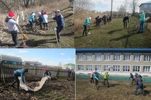 Сегодня обучающиеся школы активно занимались уборкой территории школы