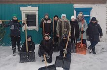 В рамках месячника гражданско-патриотического воспитания, учащиеся 6 класса оказали тимуровскую помощь Валеевой Гульфие Фатыховне по очистке двора от снега.