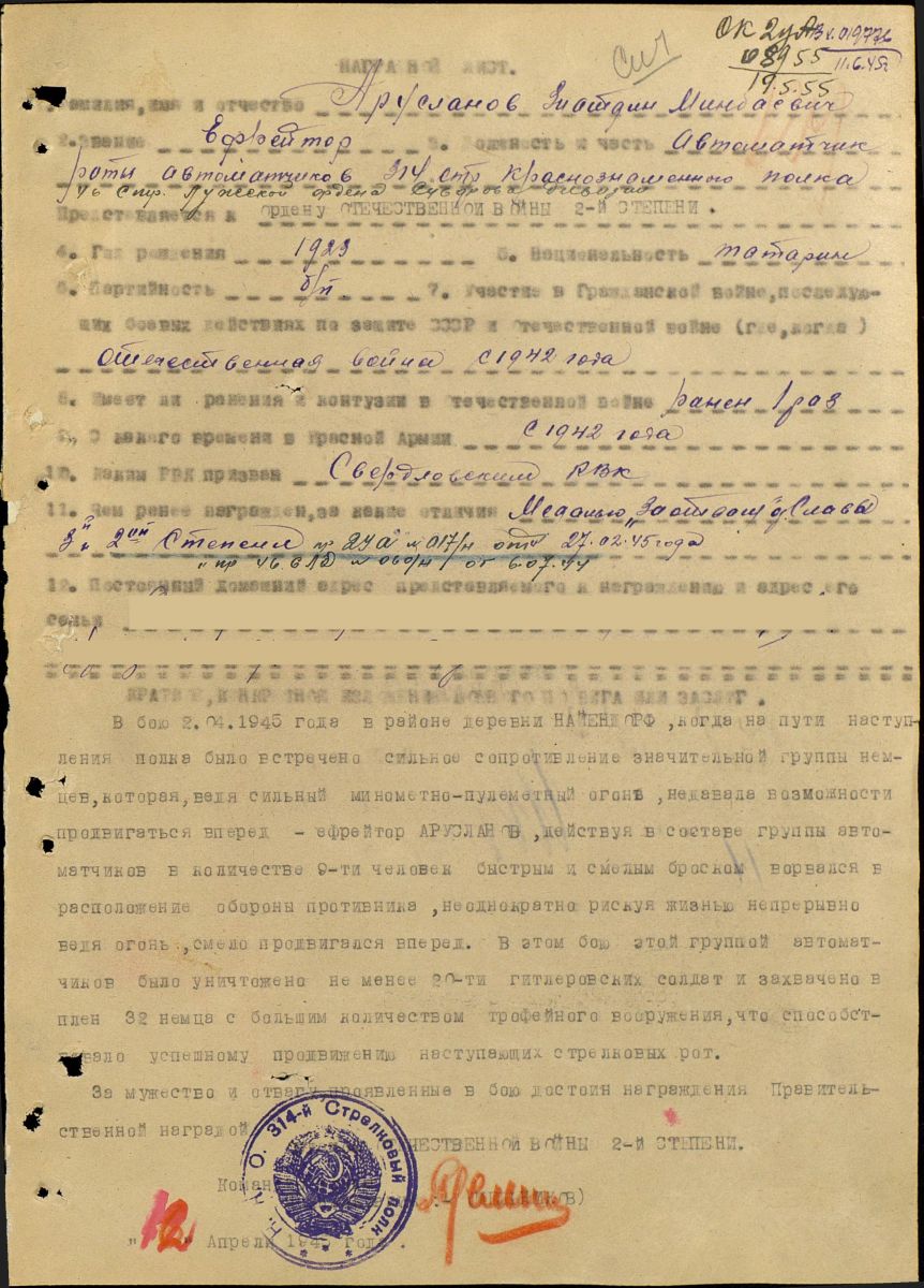 Экспозиция кавалера ордена Славы трех степеней Арсланова Зиатдина Миндубаевича