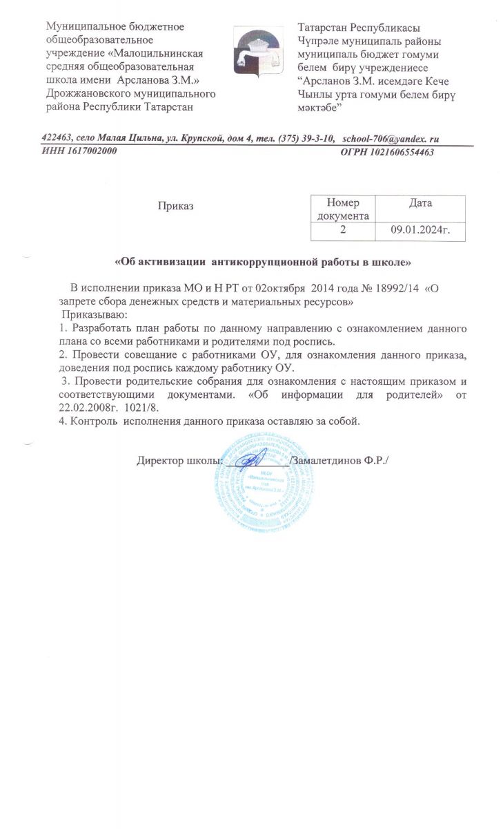Муниципальное бюджетное общеобразовательное учреждение «Малоцильнинская средняя общеобразовательная школа имени кавалера ордена Славы трех степеней Арсланова Зиатдина Миндубаевича» Дрожжановского муниципального района Республики Татарстан /Татарстан Республикасы Чүпрәле муниципаль районы “Дан орденының тулы кавалеры Арсланов Зиатдин Миннебаевич исемендәге Кече Чынлы гомуми урта белем бирү мәктәбе” муниципаль бюджет гомуми белем бирү учреждениесе