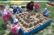 Игры с природным материалом , особенно для детей дошкольного возраста, являются естественным и самым доступным способом обогащения представлений о природе, развития мыслительных операций, свойств внимания и т. д. Ведь дети, играя с песком, получают море удовольствия, т.к. он помогает детям развиваться и выражать свои эмоции: восторг, радость, удивление. Воспитатели , организовав игры с песком,ненавязчиво формируют у детей знания о качествах и свойствах неживых объектов. Как детям нравится трогать песок, пересыпать его руками или с помощью совочка. Находясь в песочнице, дети с радостью "пекут кулички", строят мосты, дороги, крепости. Насыпая в формочки и ведерки песок и выкладывая песочные фигурки, дети так же тренируют координацию движений, точность и аккуратность. Любые постройки из песка - это творческий процесс. И чем больше всевозможных песчаных миров научится создавать малыш, те лучше будет развиваться его фантазия и воображение.