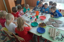 Кружок "Умелые ручки" уже третий год работает по изготовлению из яичных лотков различных посуд, фруктов, овощей. А в этом году решили изготавливать цветы. Дети вместе с воспитателем сначала вырезают заготовки, красят акварелью или гуашью, сушат, а затем собирают все заготовки и получают красивые цветочки.