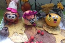 Сегодня, в школе, была организована выставка осенних поделок. Поделки сделаны вместе с родителями из овощей и фруктов, листвы различной окраски, из коры березы и других природных материалов.