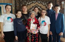 Активисты Российского движения школьников, наследники ДОО «Алые паруса» поздравили с 75-летним юбилеем уважаемую жительницу деревни Татарсткий Саплык ветерана труда Кудряшову Раису Григорьевну.