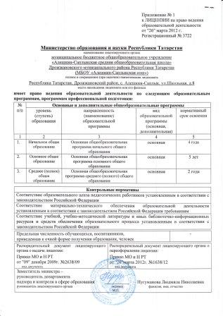 Приложение к лицензии