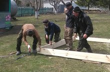 На участке детского сада с утра кипит работа: наши папы ремонтируют детскую площадку.
