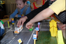Сегодня на макете города на дорогах появились новые машины. Дети познакомились с дорожными знаками "Главная дорога", "Поворот на право", "Автобусная остоновка". Повторили сигналы светофора, и умение вести себя в автобусе.