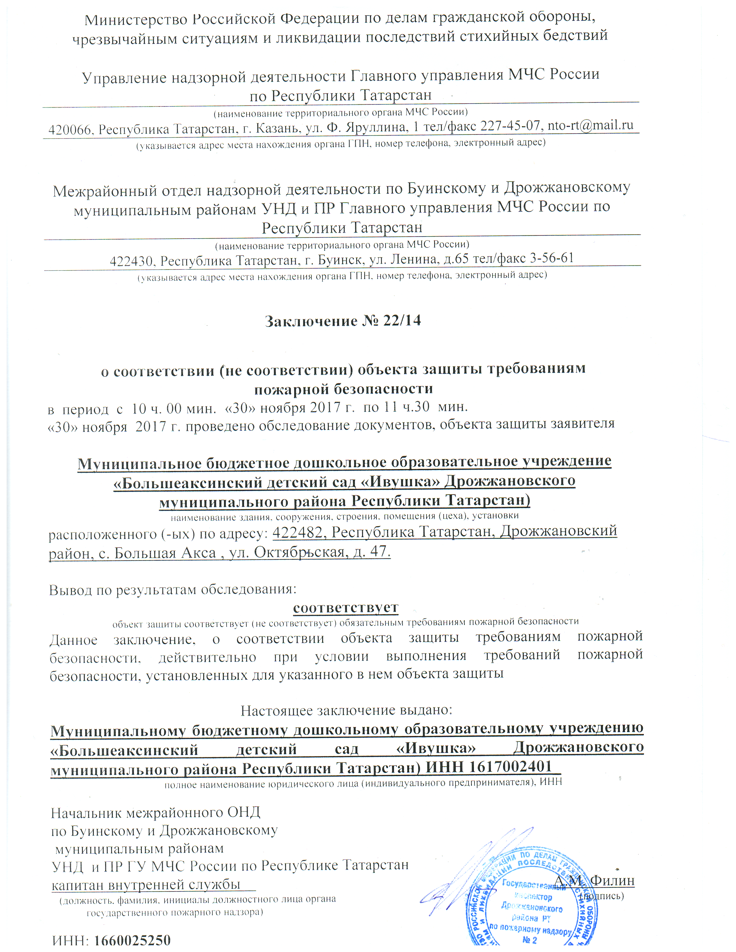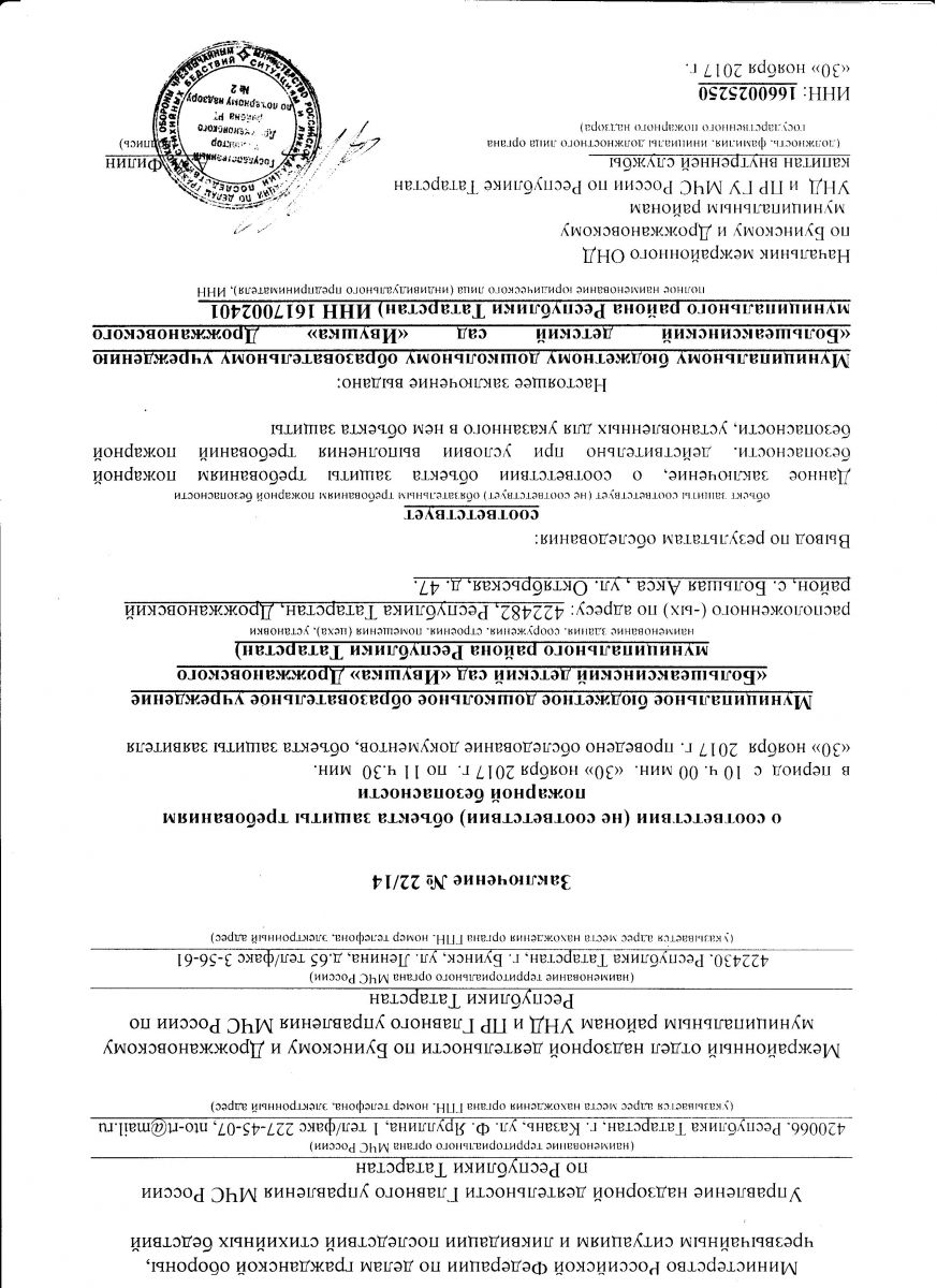 Заключение о соответствии объекта защиты обязательным требованиям пожарной безопасности 2017г.