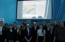 Учитель истории Милляков В.Д. в 6-7 классах провел урок «Россия и Крым – мы вместе». Он ознакомил учащихся экономико-географическим положением, историей и населением полуострова Крым, также провёл краткий экскурс по сегодняшнему Крыму.