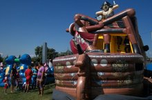 Для детей организована ярмарка: сладкий попкорн, сахарная вата, прохладительные напитки, игрушки, воздушные шары, увлекательная музыка. А мальчиков интересовал автодром: увлекательные гонки на джипах, мотоциклах, квадрацикле. Смельчаков ожидал «Огромный надувной батут», «Пиратский корабль», спортивный батут…