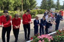 Обучающиеся почтили память жертв минутой молчания и "напоили" из чаши с водой цветы и деревья, которые растут рядом с мемориалом памяти.