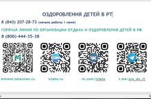 Оздоровление детей в РТ: 8(843)207-28-73 (начало работы 1 июня). Горячая линия по организации отдыха и оздоровления детей в РФ: 8(800)444-35-38.
