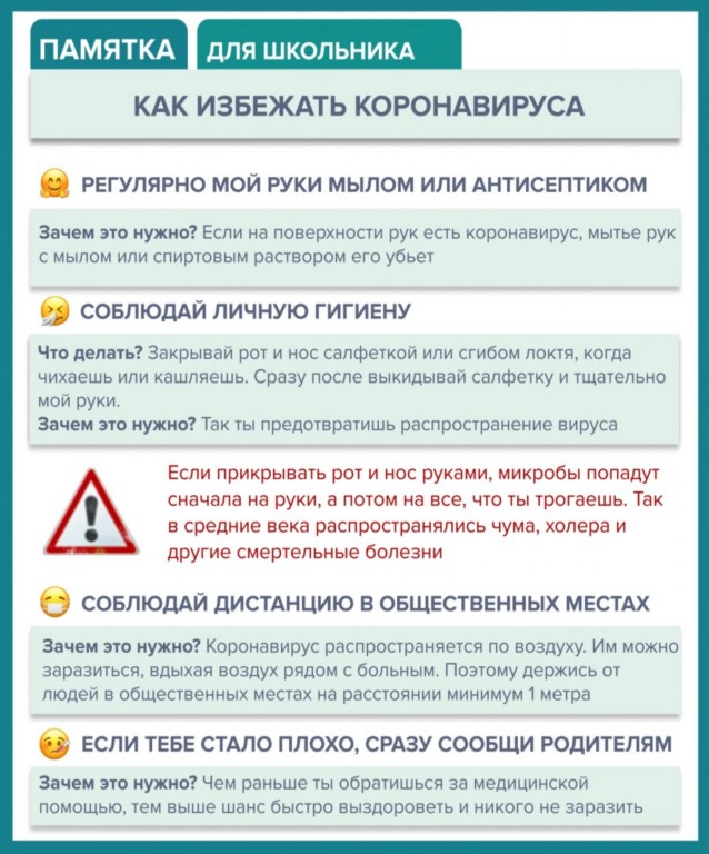 Памятка Роспотребнадзора для детей по профилактике заболеваний в школе