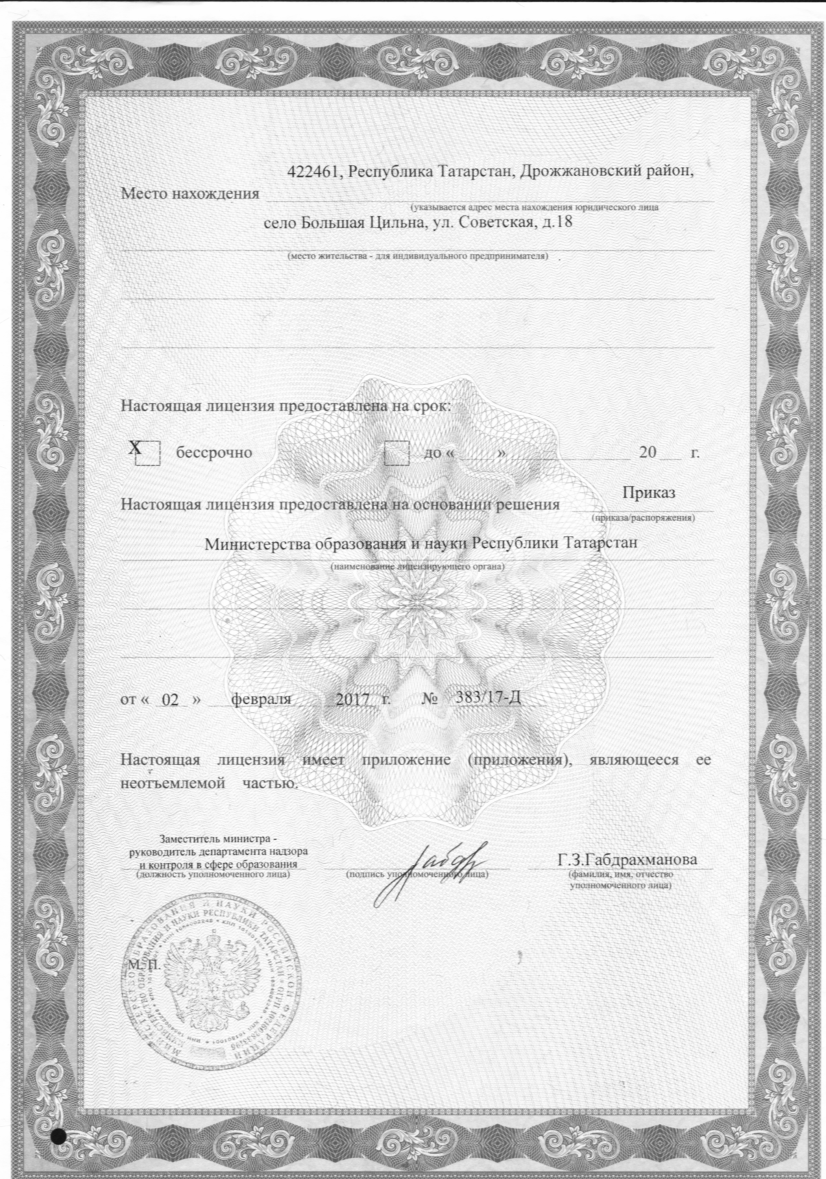 | Адрес: | 422461, Республика Татарстан, Дрожжановский район, с. Большая Цильна, ул. Советская, д. 18 |