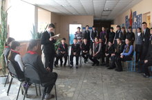 Сегодня , в "День доброго слова" в школе было организовано публичное чтение повести Бориса Васильева "А зори здесь тихие..."