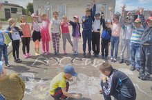 В пришкольном лагере « Солнышко каждый день проходят интересные мероприятия и конкурсы . Самым ярким и увлекательным в День России прошел конкурс рисунков на асфальте. Дети с большим интересом рисовали , показали свои мысли и желания на рисунках.