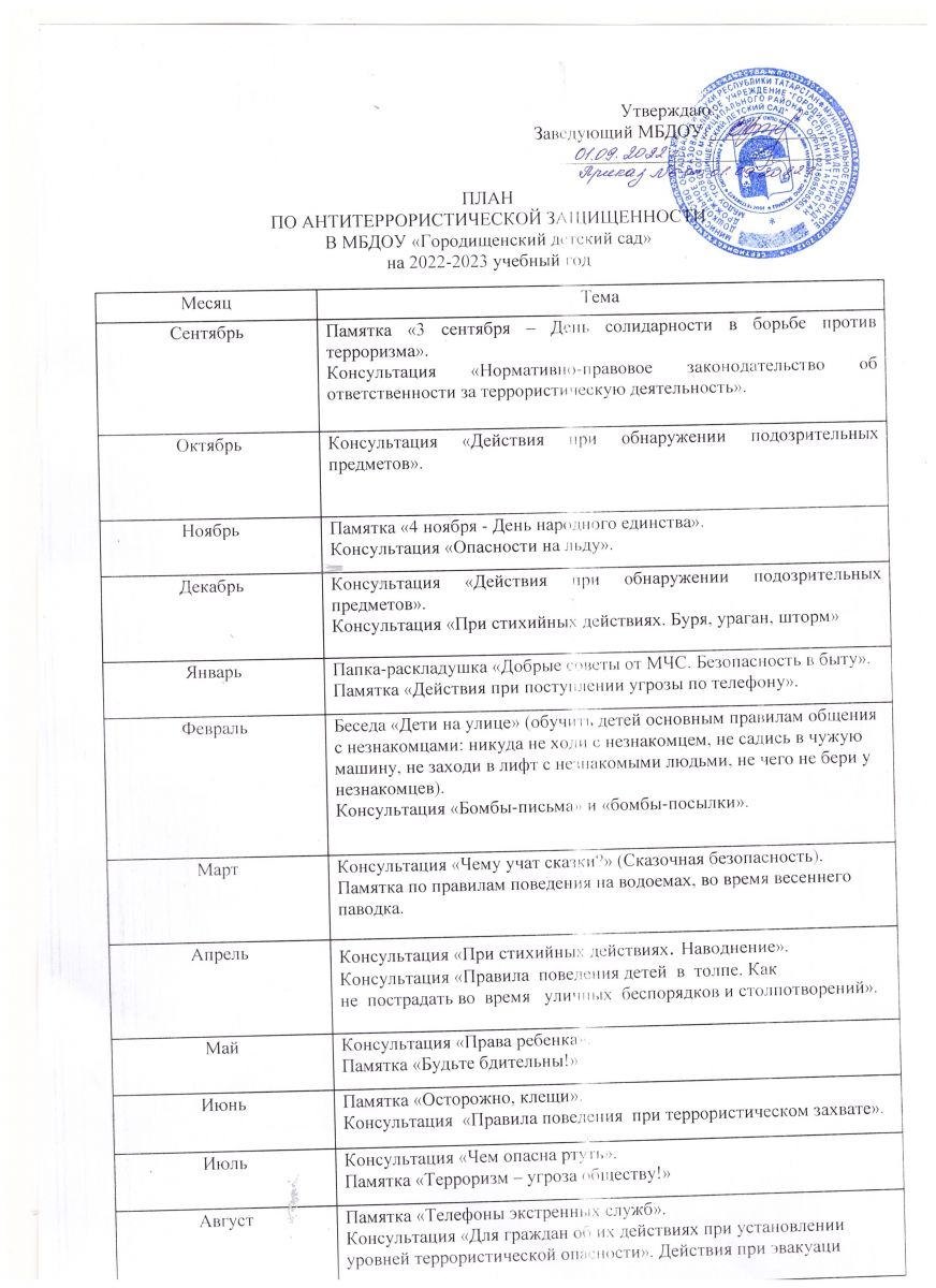 План по опеспечению антитеррористической защишенности на 2022-2023 г