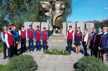 Обучающиеся школы возложили цветы и гирлянды к памятнику Солдату освободителю.