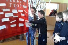 С 24-31 марта в школе проводится акция "Что такое ГТО?" Участвуют в акции все обучающиеся, учителя и родители. Старшеклассники – волонтеры, СМС-дети и отряд профилактики правонарушений, собрали мини-сочинения детей и приклеили их на стенд. Рассказы получились интересные: ребята обещают хорошо учиться и заниматься физкультурой, уважать младших и помогать старшим, любить и быть достойным защитником своей Родины.
