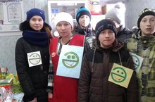 Учитель татарского языка и литературы Савлюкова А.И. с учащимися 8 класса провела акцию «Мин татарча сөйләшәм».