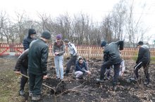 Сегодня школьники во второй раз вышли на субботник. Цель этого мероприятия - высадить в питомнике новые деревья и убрать мусор.