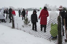 Все учащиеся сегодня вышли во двор школы, чтобы дружненько слепить фигуры из снега.