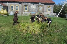 В рамках добровольческой акции"Осенняя неделя добра", в день, под названием "Добрая земля", обучающиеся приняли участие в уборке территории церкви.