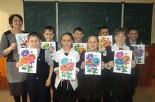 К предстоящему празднику в школе был организован конкурс детского рисунка "Букет для мамы".