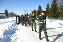 Ко Дню защитника Отечества состоялась военно-спортивная игра "Зарница" между "ротами": "Синие" и "Зелёные". Членами "штаба" был разработан и утверждён план проведения игры "Зарница": 1. Строевой осмотр /открытие, прохождения торжественным маршем и с песней. 2. Спортивные состязания между ротами. 3. Соревнования по ориентированию. 4. Марш-бросок. 5. Поиск флага. 6. Подведение итогов. "Зарница" - самая любимая игра обучающихся нашей школы, где можно показать свои организаторские способности, быстроту, ловкость, силу и сноровку, умение в ориентировании,... А как же без военного костюма в военно-спортивной игре? Большинство участников пришли в военной форме и в "боевом снаряжении". Умело командовали своими ротами командиры Кондратьев Дмитрий и Тарасов Кирилл, взводами - Ларионов Дмитрий, Никифорова Эльза, Михайлов Олег и Суркин Игорь. Болеть за своих пришли отцы, братья, родственники. Перед "марш-броском" колонну "военных" сопровождали отцы на автомобилях. К концу игры силы обеих рот были почти наравне, но флаг был найден Ильбеевой Юлией из "роты Синих", и победа оказалась на их стороне. Молодцы!