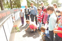 Затем ребята зажгли свечи памяти у памятника павшим в ВО войне и возложили цветы.