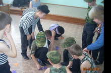 Сегодня в школе прошла игра "Зарница". "Зеленые" и "синие" соревновались в стрельбе, прохождении минного поля, искали на поле (стадионе) карты, содержащие информацию о местонахождении флага.