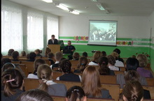 Никифоров А.А. старался донести до детей понимание того, насколько значима тема безопасности. Урок открылся торжественной речью в честь погибших и пострадавших при терактах. Далее выступающий обратил внимание на то, что наша безопасность зависит от того, насколько молодежь информирована и обучена навыкам безопасности.