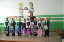 Директор филиала «Шигали» филиала ООО «Корм. Дрожжаное» Клементьев Ф.Н. так же поздравляя первоклассников подарил наборы для школы.