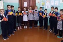 В группе продленного дня учащиеся делали аппликацию на тему "Подарок любимой маме"