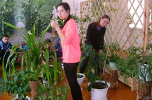 Зимний сад – это настоящий уголок лета. В нашей школе есть настоящий зимний сад, под него отведено полноценное помещение. Растения постоянно нуждаются во внимании и заботе. Сегодня в нашем зимнем саду «трудились» обучающиеся, которые ходят в лагерь, они же энтузиасты – любители природы. Они большую часть своего времени проводят в школе, поэтому так важно создать в ней атмосферу тепла и уюта. Растения - это контакт с живой природой, красотою форм, приятным запахом и спокойной зеленой окраской они благотворно влияют на человека.