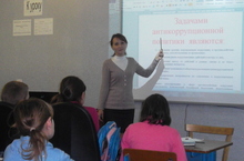 О коррупции сейчас знают все. Знают ли о коррупции дети? По этой проблеме среди начальных классов 5.12.2012 года были проведены классные часы в 1 классе "Скажем коррупции твердо "НЕТ", во 2 классе "Правда и ложь",в 3 классе "Как я понимаю справедливость", в 4 классе "Без коррупции с детства".Дети много узнали нового во время этих бесед, с интересом посмотрели " Мультик про коррупцию". В финале прозвучала песня О.Газманова "А как мы сможем победить!"