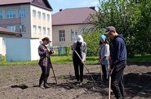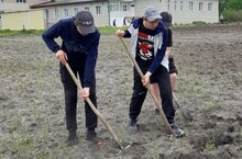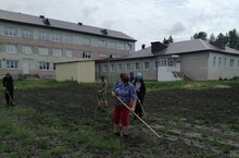 Воспитанники лагеря и труда "КРУТО" активно работают на пришкольном участке.