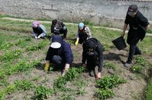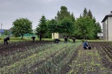 Воспитанники лагеря и труда "КРУТО" добросовестно трудятся на пришкольном участке.