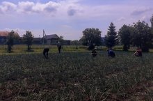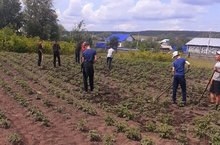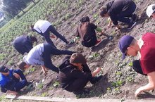 Воспитанники лагеря и труда "КРУТО" добросовестно трудятся на пришкольном участке.