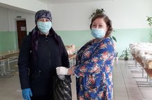 Сегодня в школе была организована выдача продуктовых наборов учащимся нашей школы. За продуктами в школу были приглашены родители учащихся. Каждый родитель приходил в строго отведенное время и обязательно у каждого имелись маска и перчатки.