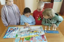 Мы сегодня проводили развлекательную разминку по теме "Дорога-это опасно!"Смотрели презентацию,играли дидактические и увлекательные игры,рассмотрели иллюстрации.Играли игру-повторялку про правила дорожного движения.