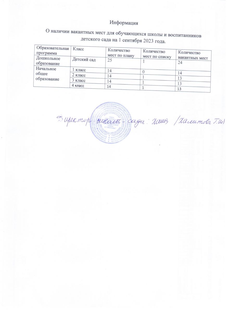 Вакантные места для приема (перевода) обучающихся