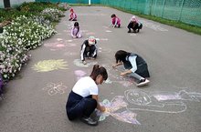 Сегодня в школе проводился конкурс рисунков на асфальте "Экстремизму- нет!