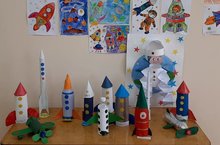 Сегодня в школе организована выставка работ учащихся "Мой летательный аппарат" ,посвящённая ко Дню Космонавтики .