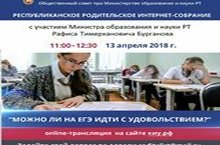 13 апреля 2018 г. с 11:00-12:30 состоится Республиканское родительское интернет-собрание "Можно ли на ЕГЭ идти с удовольствием?"
