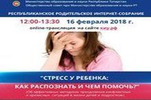 16 февраля 2018 года в 12:00 часов состоится республиканское родительское интернет-собрание на тему "Стресс у ребёнка:как распознать и чем помочь?" об эффективных методах преодолевания конфликтных и кризисных ситуаций в жизни детей и подростков.
