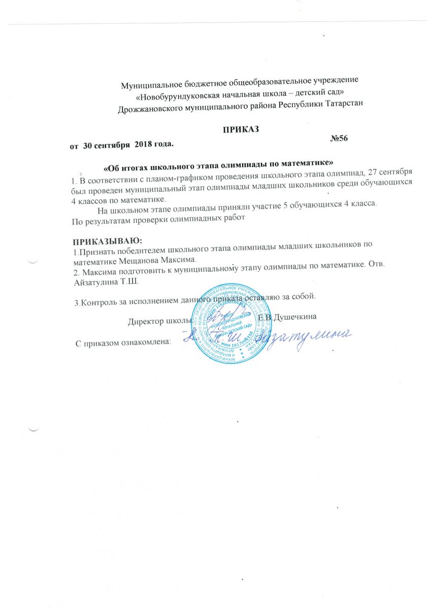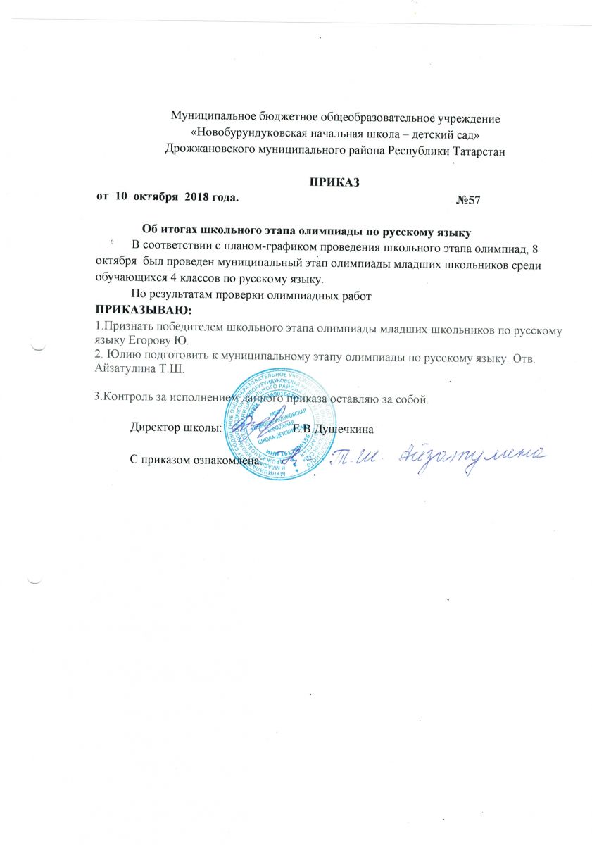 Приказ об итогах школьного этапа олимпиады по русскому языку